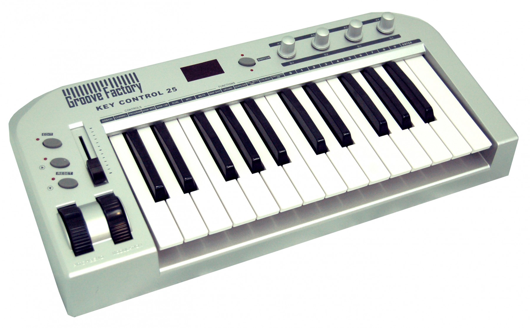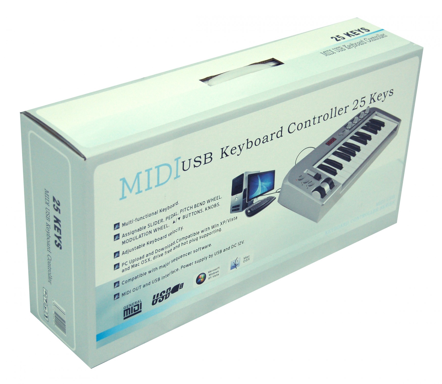 25 keys midi controler. Midi or usb connection. Compatible with Mac or Pc. 1 volume fader 4 fully assignable knob . 1 bend-pitch roll. 1 assignable expression roll. 1 sustain pedal input 1 midi output Perfect for studio or for home use. Retail: 119.99$ - Informations complémentaires